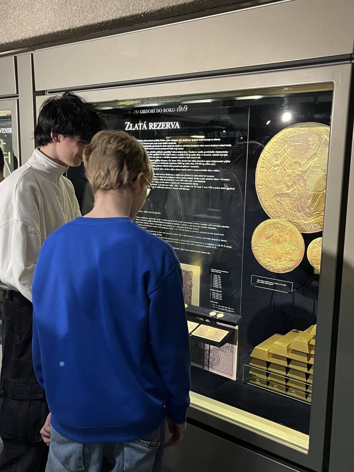 Potěžkat si cihlu zlata, obdivovat druhou největší zlatou minci světa, prohlédnout si mince a bankovky, kterými platili naši předci a dozvědět se zajímavosti o historii platidel, mohli žáci 9.A přímo v trezoru ČNB. Během dne rovněž navštívili památník heydrichiády v kryptě kostela sv. Cyrila a Metoděje a připomněli si hrdinství parašutistů v době protektorátu.