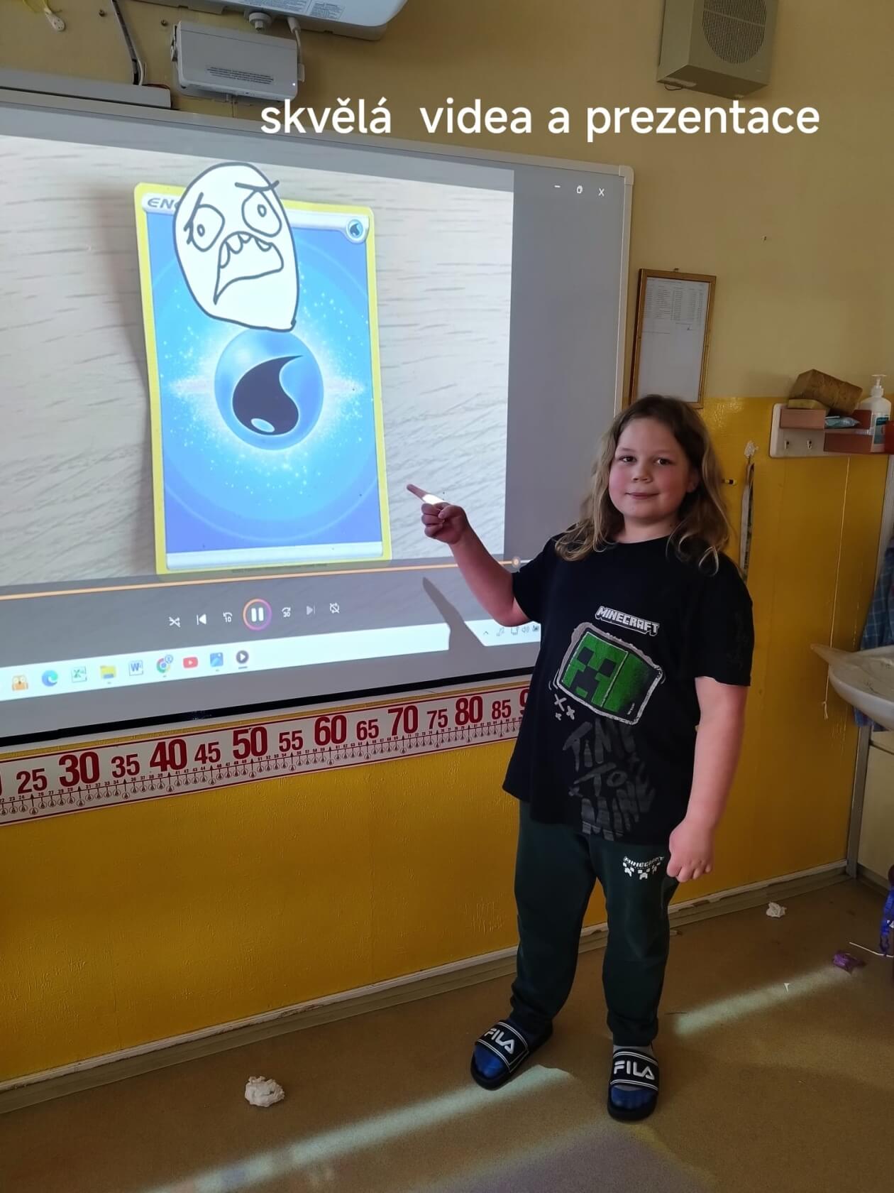 Dnes už jsme šli do „finále“ a vytvořili jsme plakáty, prezentovali jsme vlastní utvořená videa a prezentace před třídou. Nejvíce nás bavili pokusy, které jsme si předem vyzkoušeli a ve třídě ukázali spolužákům. Moc nás to bavilo a obohatili jsme si učivo nejen z prvouky , ale prohloubili jsme si i vědomosti, dovednosti a schopnosti spolupracovat.