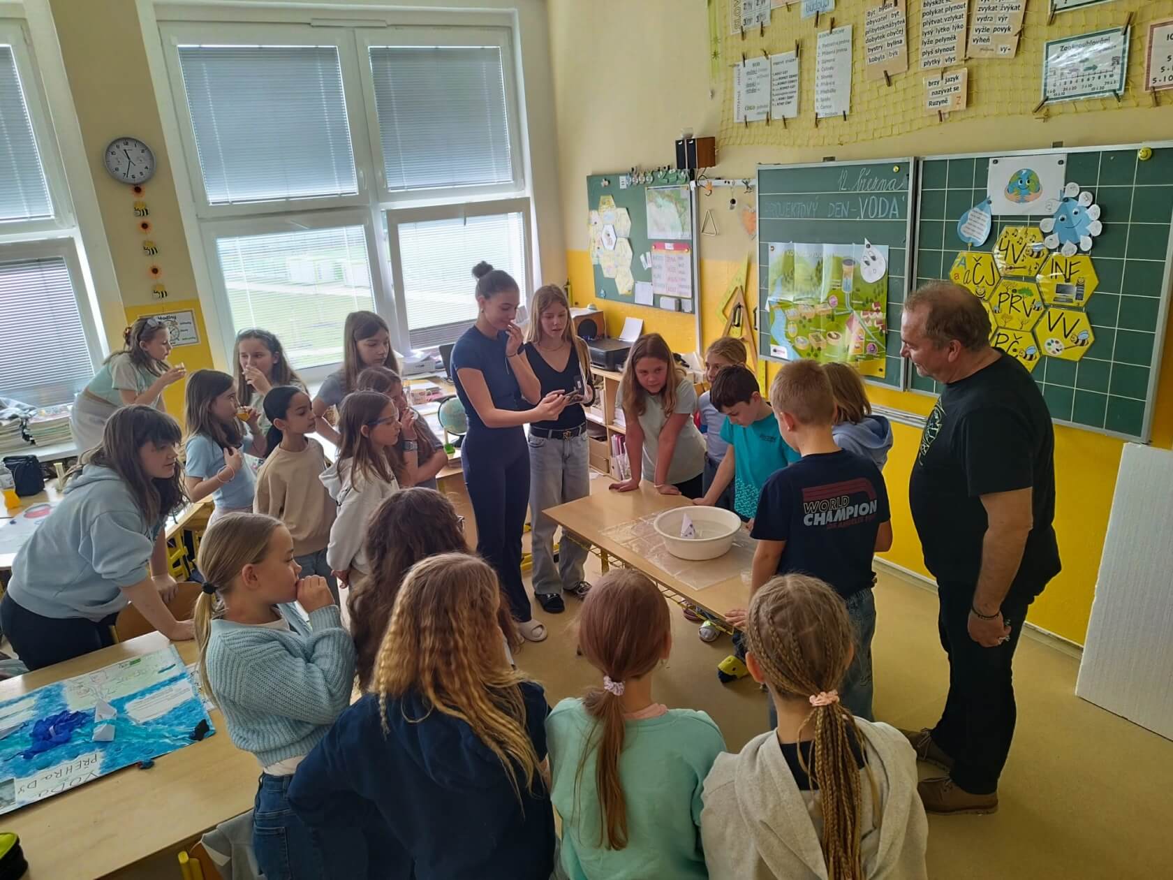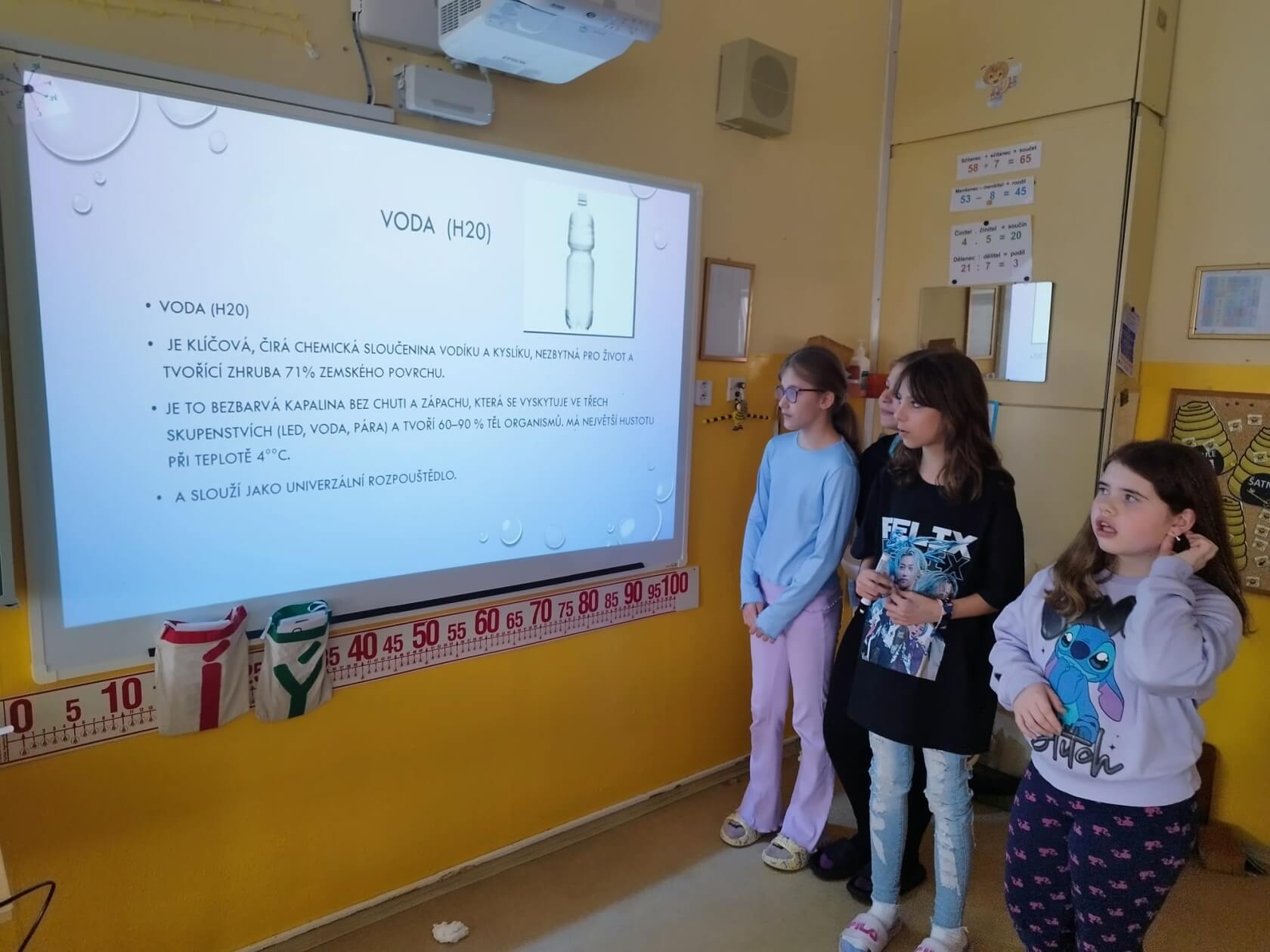 Tématu jsme se dříve věnovali i v jiných předmětech. Tvořili jsme příběhy „O kapičce vody, která spadla na zem“, naučili jsme se písničku o tání ledu na Antarktidě, vyhledávali jsme na internetu informace k danému tématu, který jsme si ve skupině se spolužáky předem zvolili.