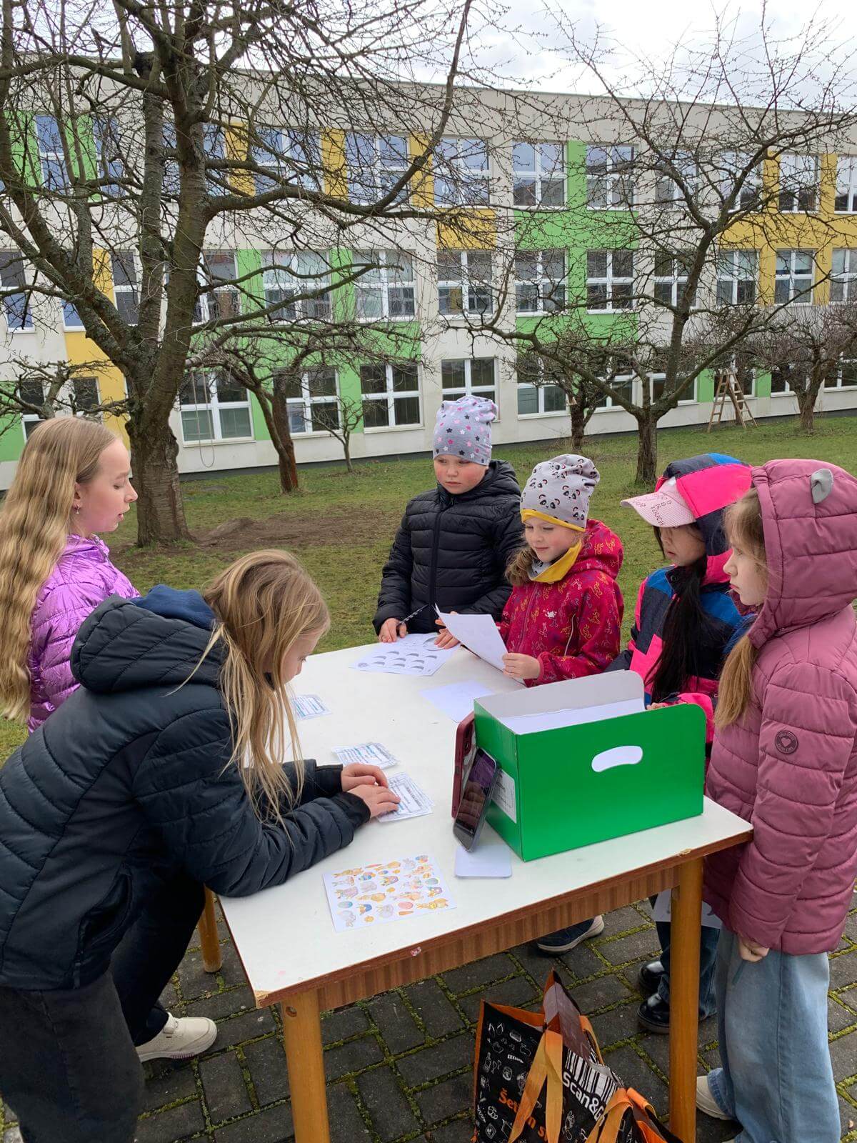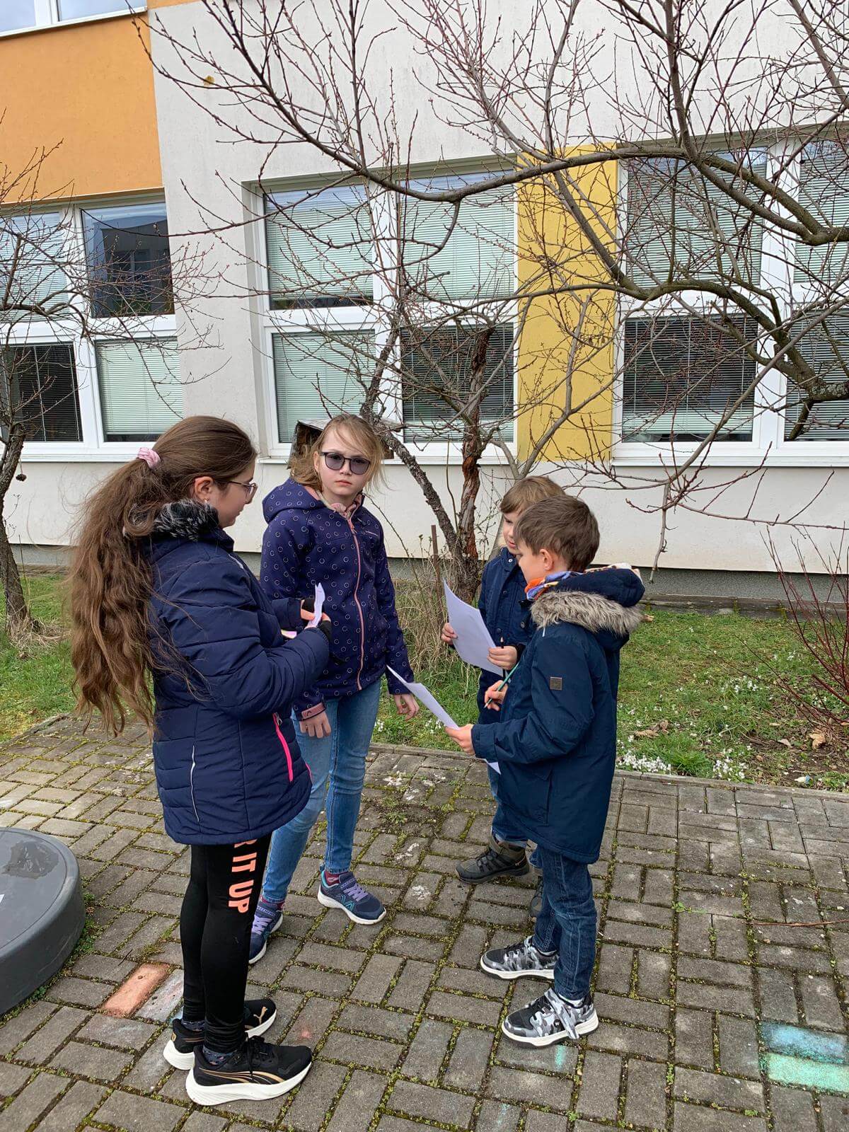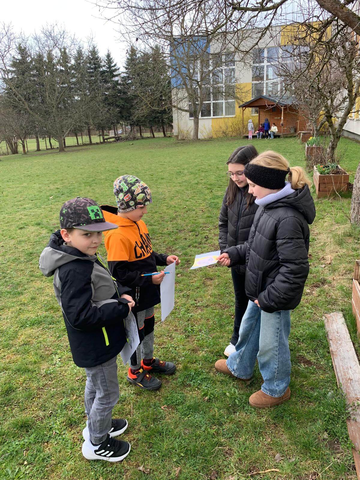 Žáci 1. ročníku navštěvující družinu z AJ od paní učitelky Kutílkové dnes hledali velikonoční mlsání ve školním sadu. Spolužáci ze 4. ročníku jim připravili úkoly týkající se Velikonoc ve Velké Británii.
