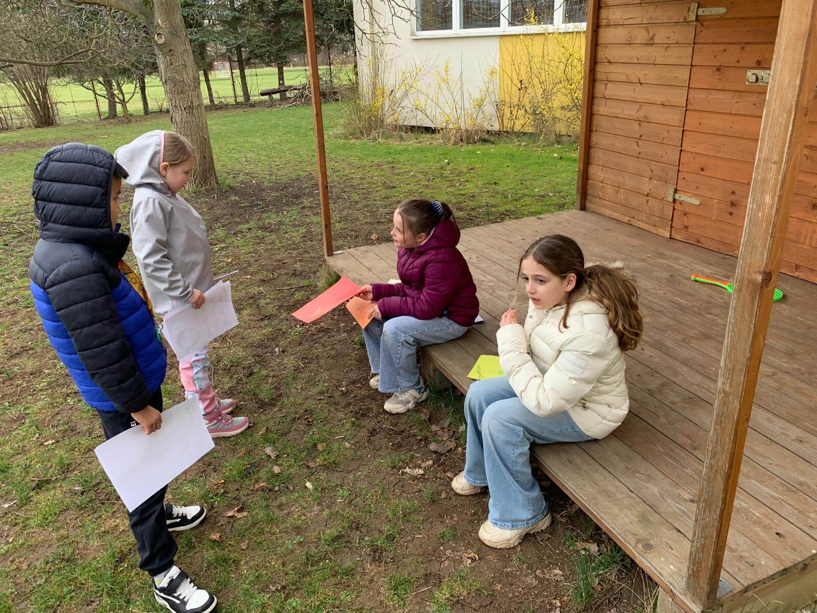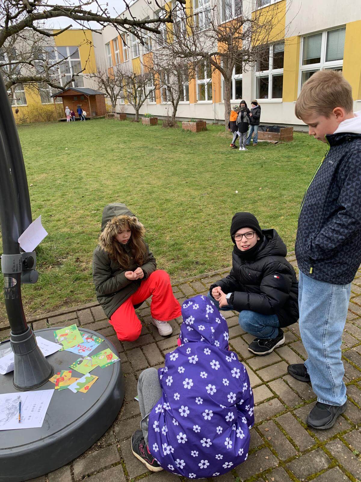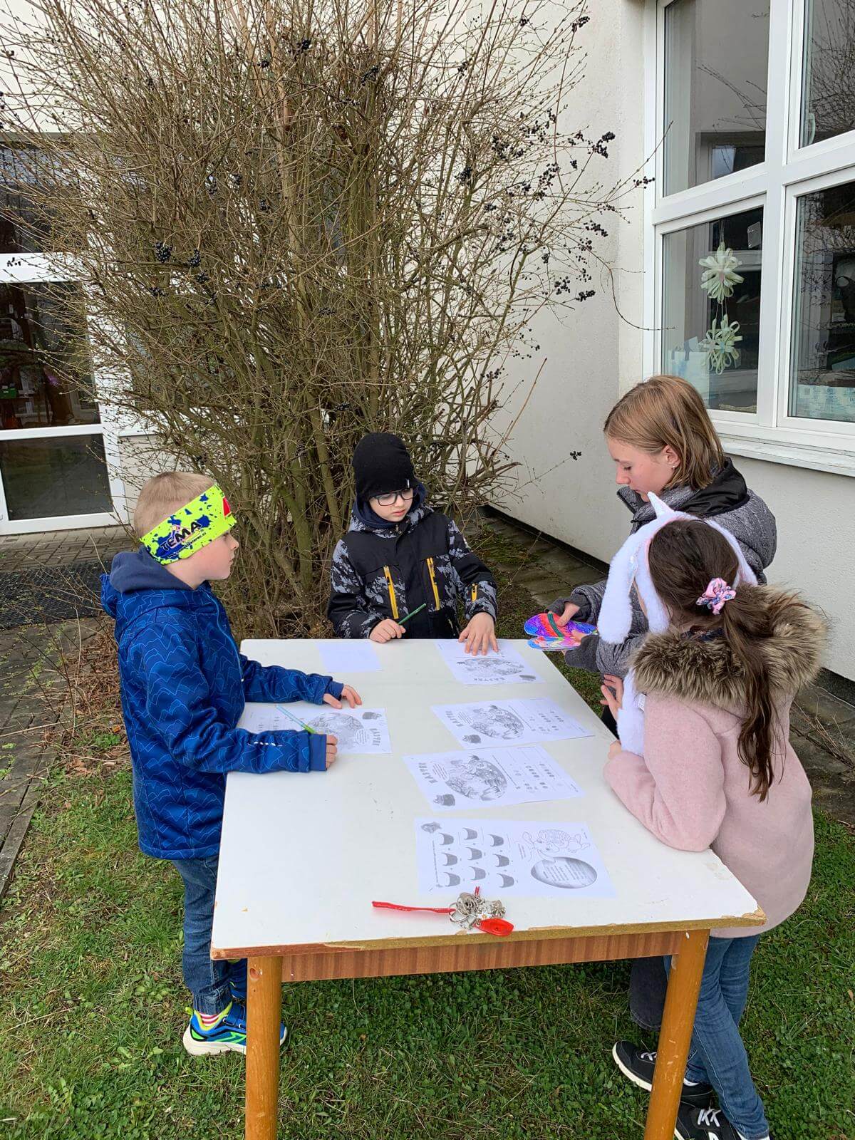 Žáci 1. ročníku navštěvující družinu z AJ od paní učitelky Kutílkové dnes hledali velikonoční mlsání ve školním sadu. Spolužáci ze 4. ročníku jim připravili úkoly týkající se Velikonoc ve Velké Británii.