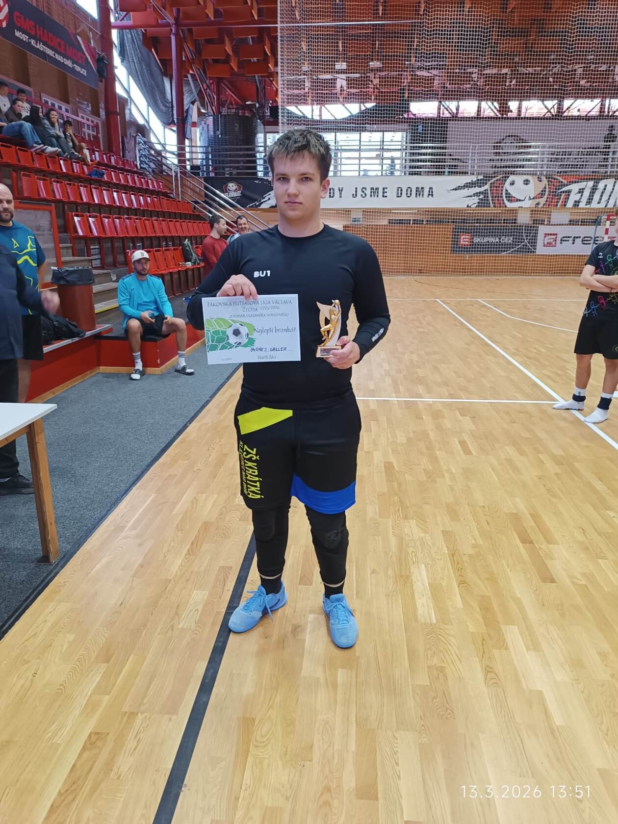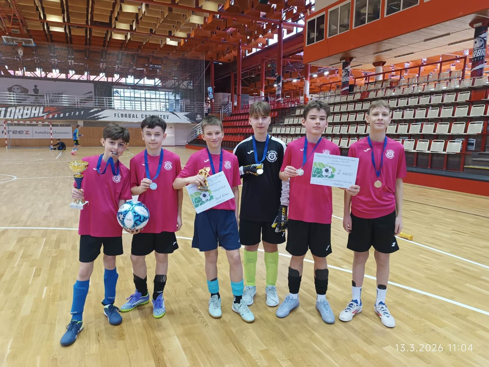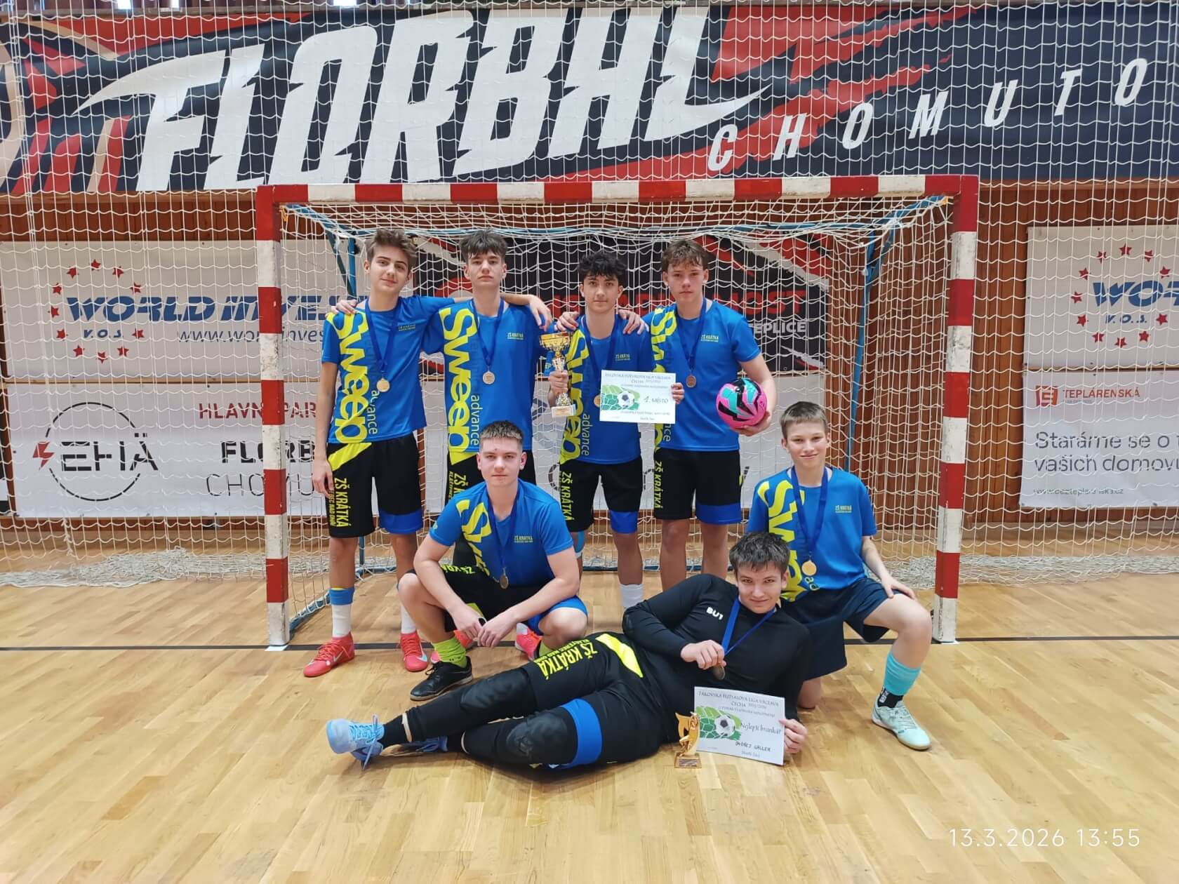 Velký úspěch zaznamenali také starší žáci z 8. a 9. tříd, kteří soutěžili o Pohár Vladimíra Novotného. Díky skvělé spolupráci a bojovnému výkonu dokázali celý turnaj vyhrát a získali 1. místo. K tomu přidali i individuální ocenění – Ondřej Galler byl vyhlášen nejlepším brankářem turnaje.