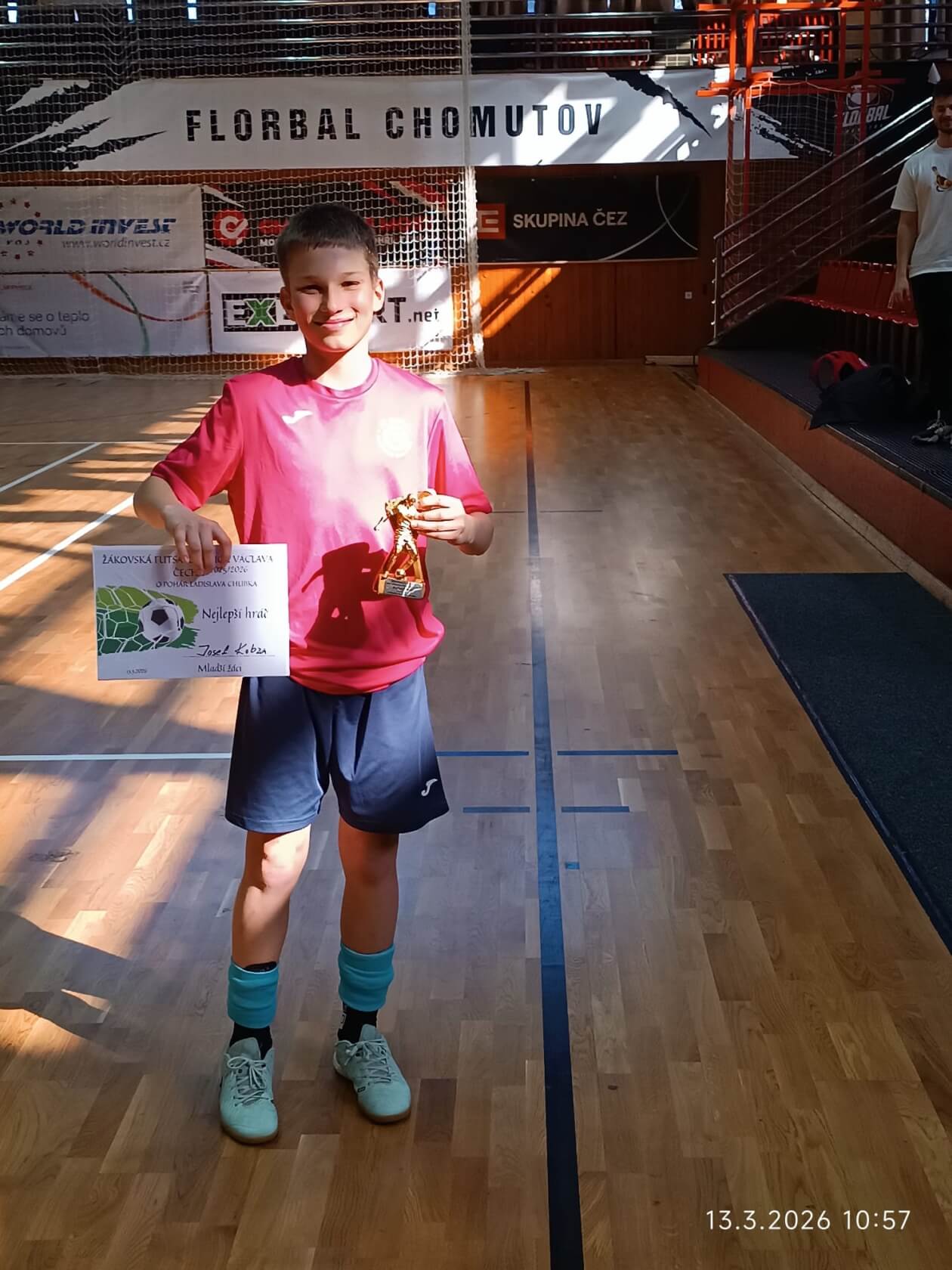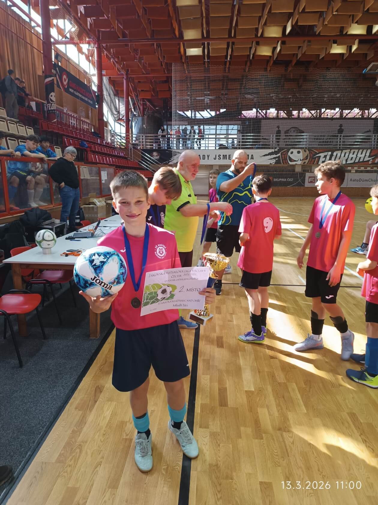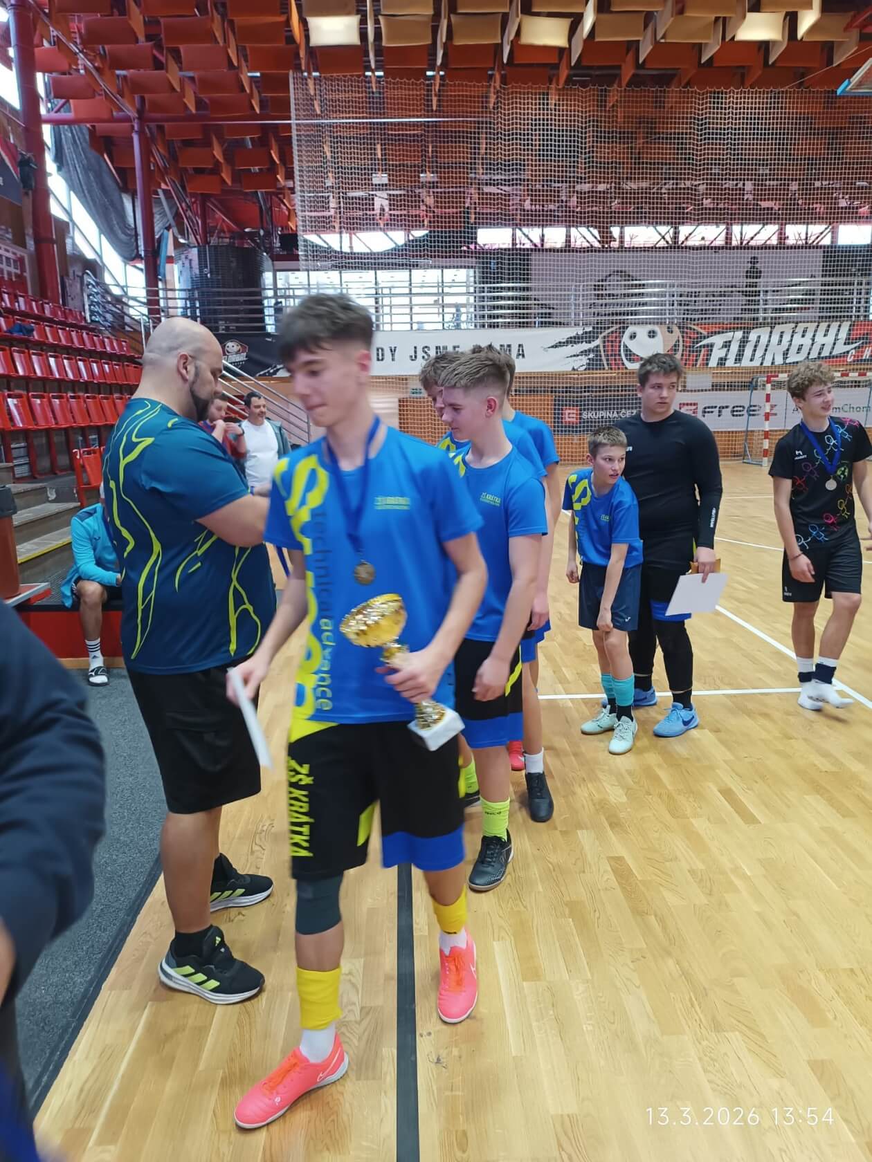 Velký úspěch zaznamenali také starší žáci z 8. a 9. tříd, kteří soutěžili o Pohár Vladimíra Novotného. Díky skvělé spolupráci a bojovnému výkonu dokázali celý turnaj vyhrát a získali 1. místo. K tomu přidali i individuální ocenění – Ondřej Galler byl vyhlášen nejlepším brankářem turnaje.