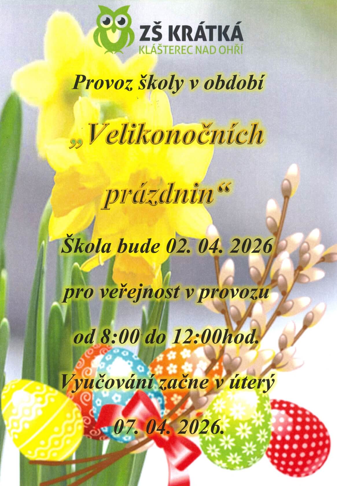 Domů » Aktuality » Provoz školy v období velikonočních prázdnin 2026