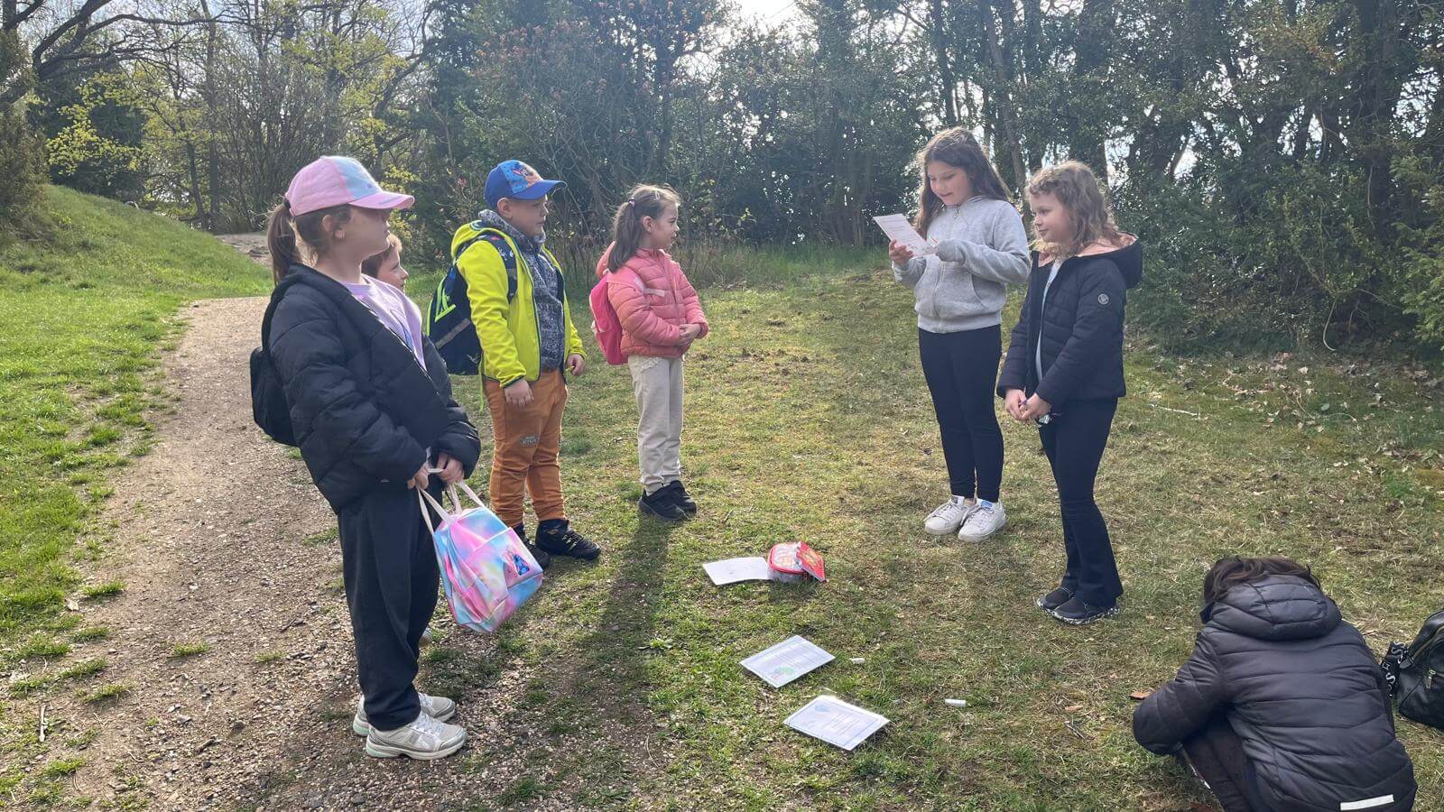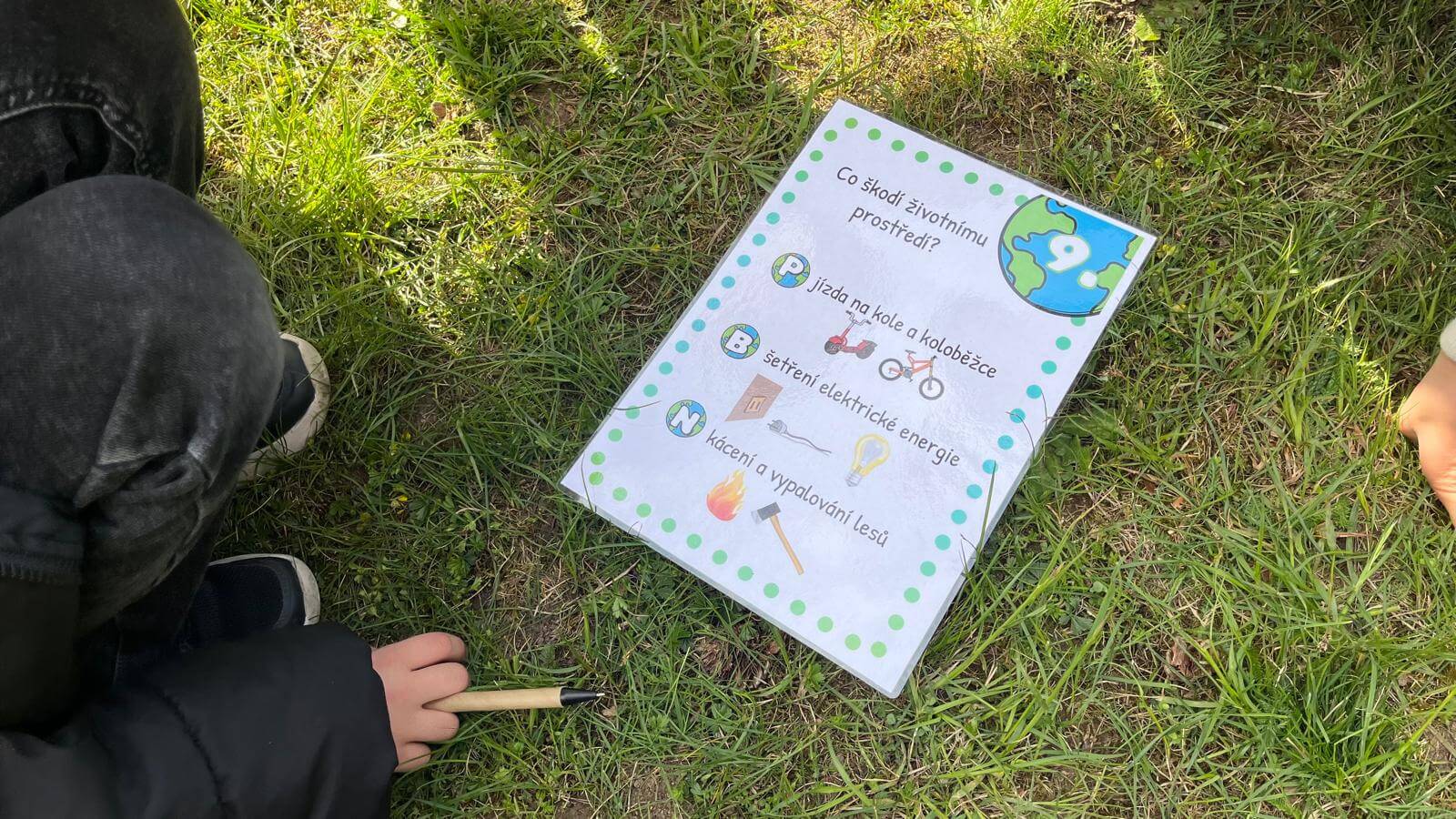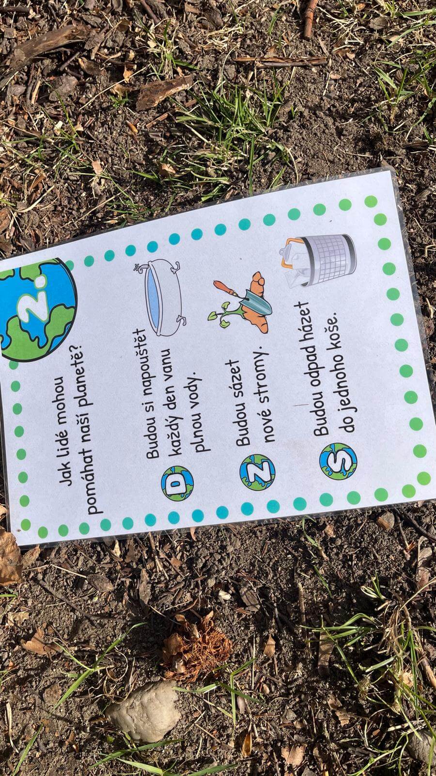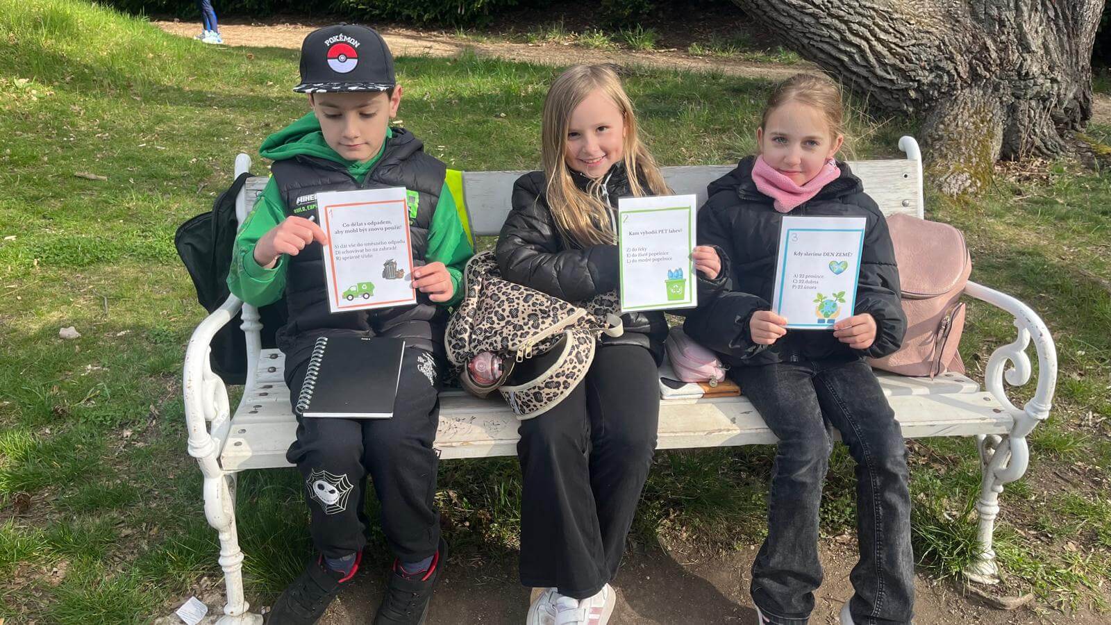 23.4. 2026 připravila 3.C pro 1.A stezku v rámci projektu Den Země. Třeťáci si připravili šest stanovišť, na kterých prvňáčci plnili úkoly – třídění odpadu, jak se chováme v lese, v parku, poznávali květiny, stromy a zvířata. Nakonec společně vyluštili pěknou tajenku, kterou popřáli Zemi krásný svátek. Celé dopoledne bylo slunečné počasí. Prvňáčci i třeťáci byli odměněni sladkostí a malí i diplomem.