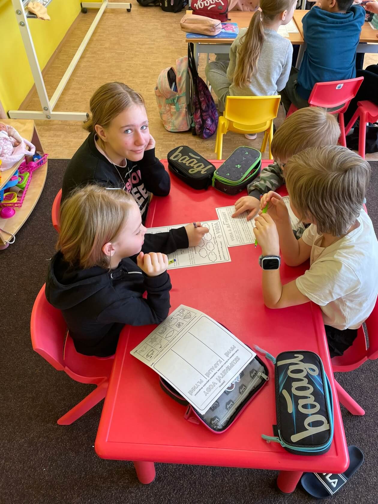Tento den se u nás vše točilo kolem „modrého zlata“. Naše třída se proměnila v badatelské centrum. Procvičili jsme si hlavy a společně ve skupinách vytvořili tématické sešity plné zajímavostí. Leontýnka si pro nás připravila skvělé povídání o vodních tocích tady u nás v Klášterci. Probrali jsme koloběh vody i to, jak ji v krajině udržet a jak s ní šetřit. Abychom viděli sílu vody v přímém přenosu, zaseli jsme si vlastní velikonoční osení. Tečku za celým dnem jsme udělali stylově – v bazénu při pořádném zápase ve vodním pólu.