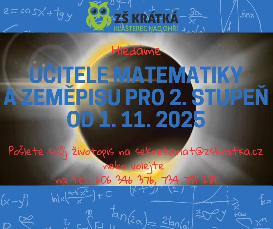 V případě zájmu volejte na telefon: Mgr. Zdeňka Horská, zástupkyně ředitele školy pro II. stupeň – 602 954 738, nebo pište na e-mail horska@zskratka.cz.
