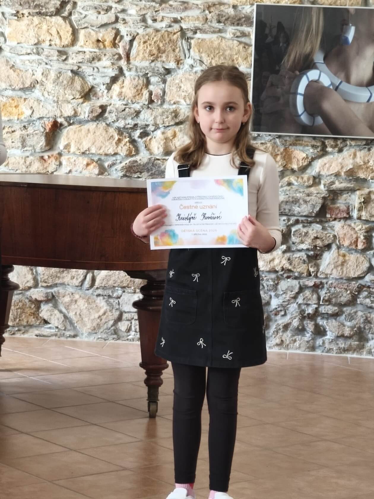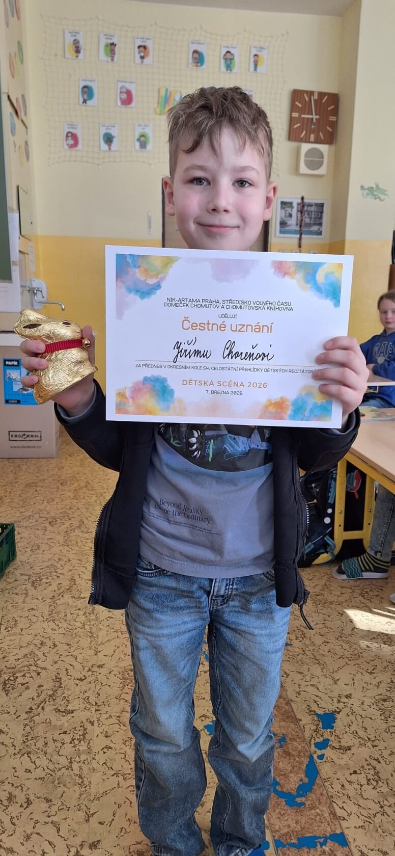 - Kristýnka Kovářová (2.B) a Jiřík Choreň (4.B) získali čestné uznání za svůj krásný přednes.